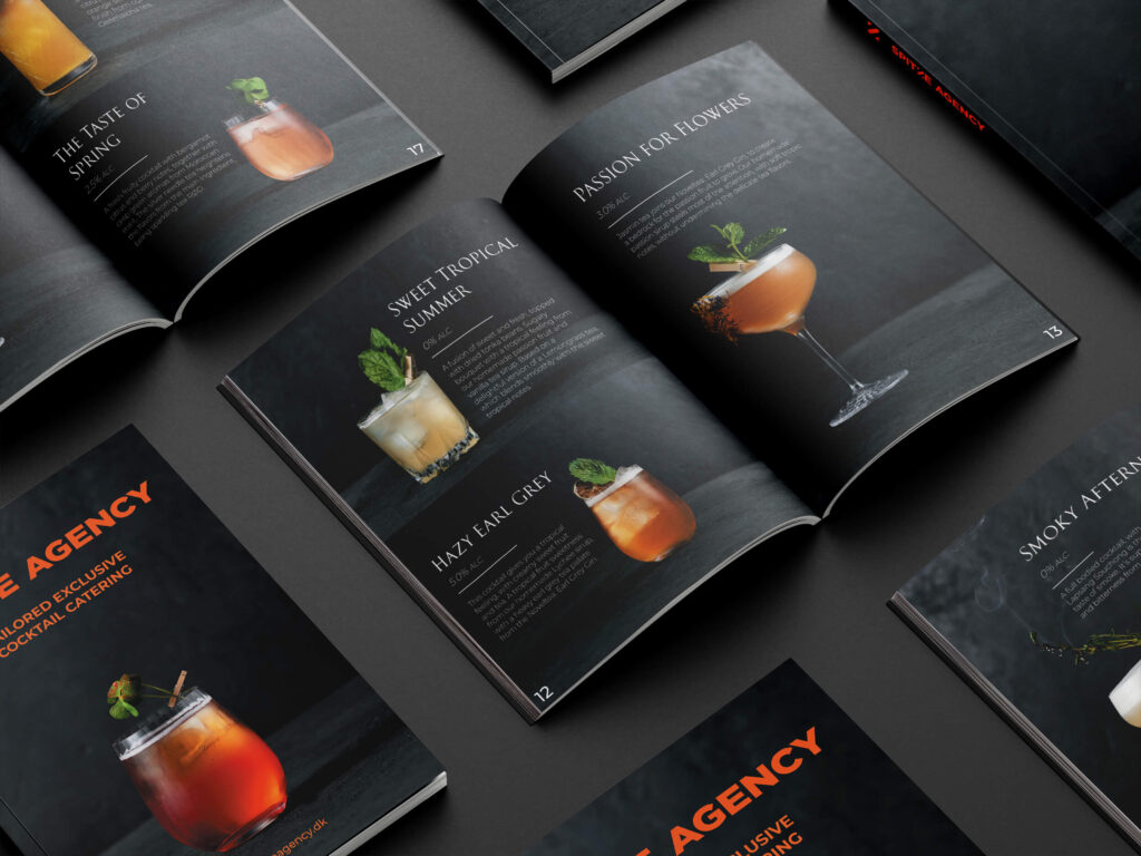 Tryksager Spitze Agency Opsætning af brochure Spitze Agency skulle bruge en brochure for at vise deres store udvalg af cocktail specialiteter. Brochuren blev oprindeligt produceret til bryllupsmesse, men bliver også brugt som materiale ved salgsfremstød. SE DERES HJEMMESIDE